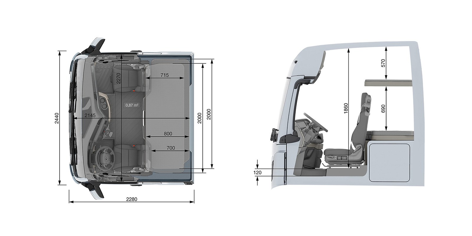 La cabina, siempre enfocada hacia el conductor, proporciona la mejor asistencia posible al conductor, tanto a nivel ergonómico como funcional.